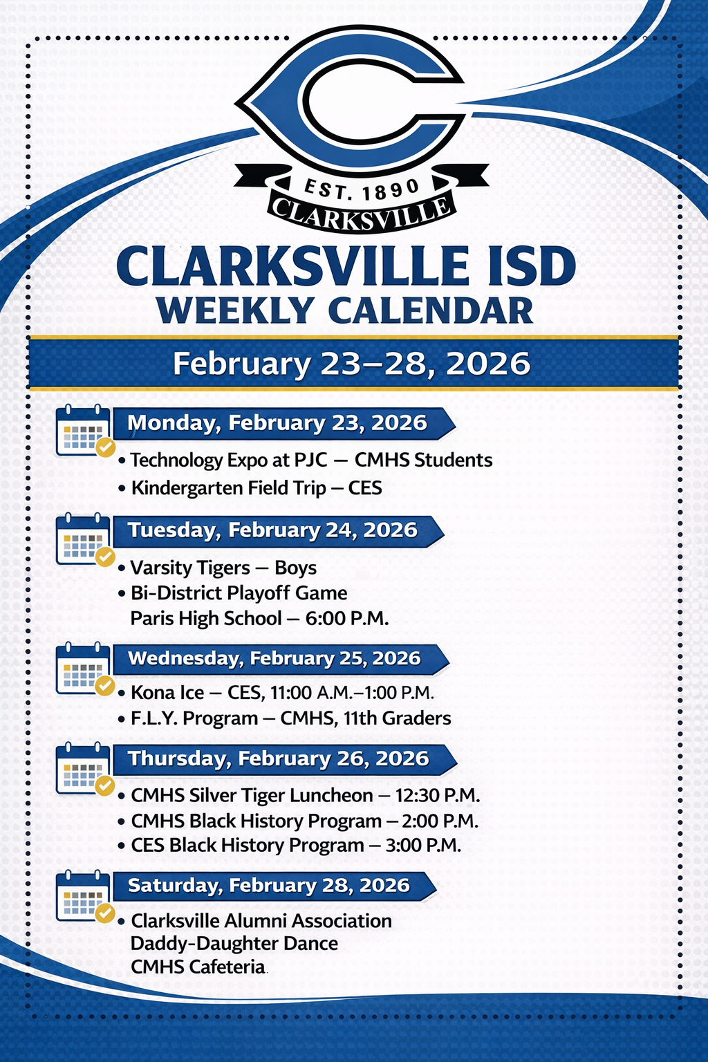 CISD Weekly Calendar - February 23 - 28, 2026