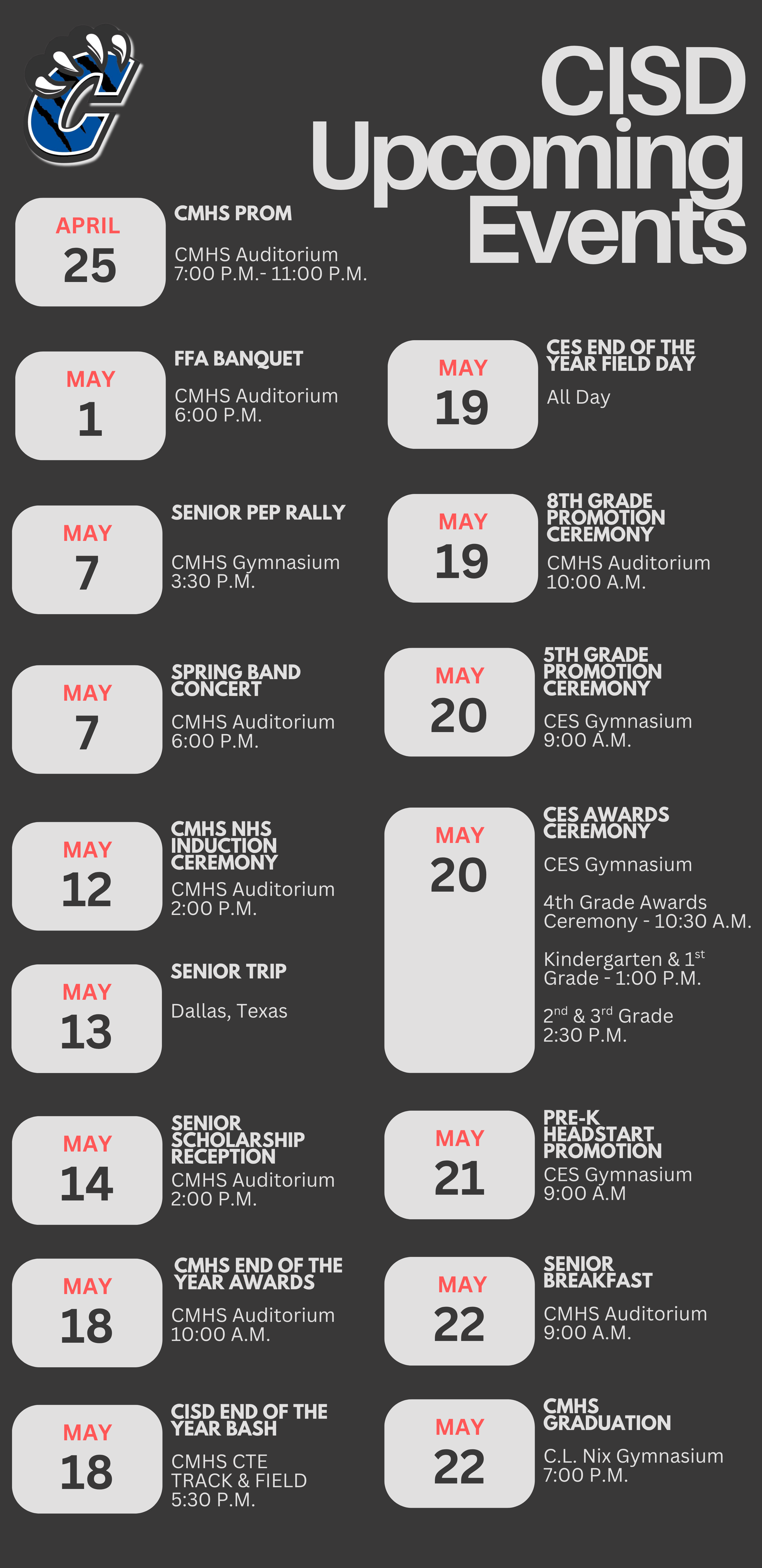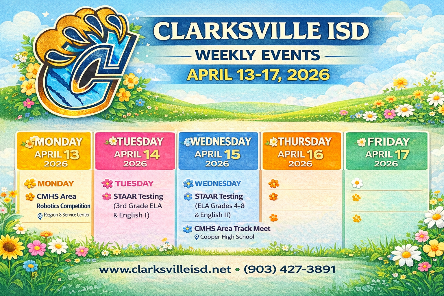 CISD Weekly Calendar: April 6-10, 2026https://www.parentsquare.com/feeds/76786708/edit