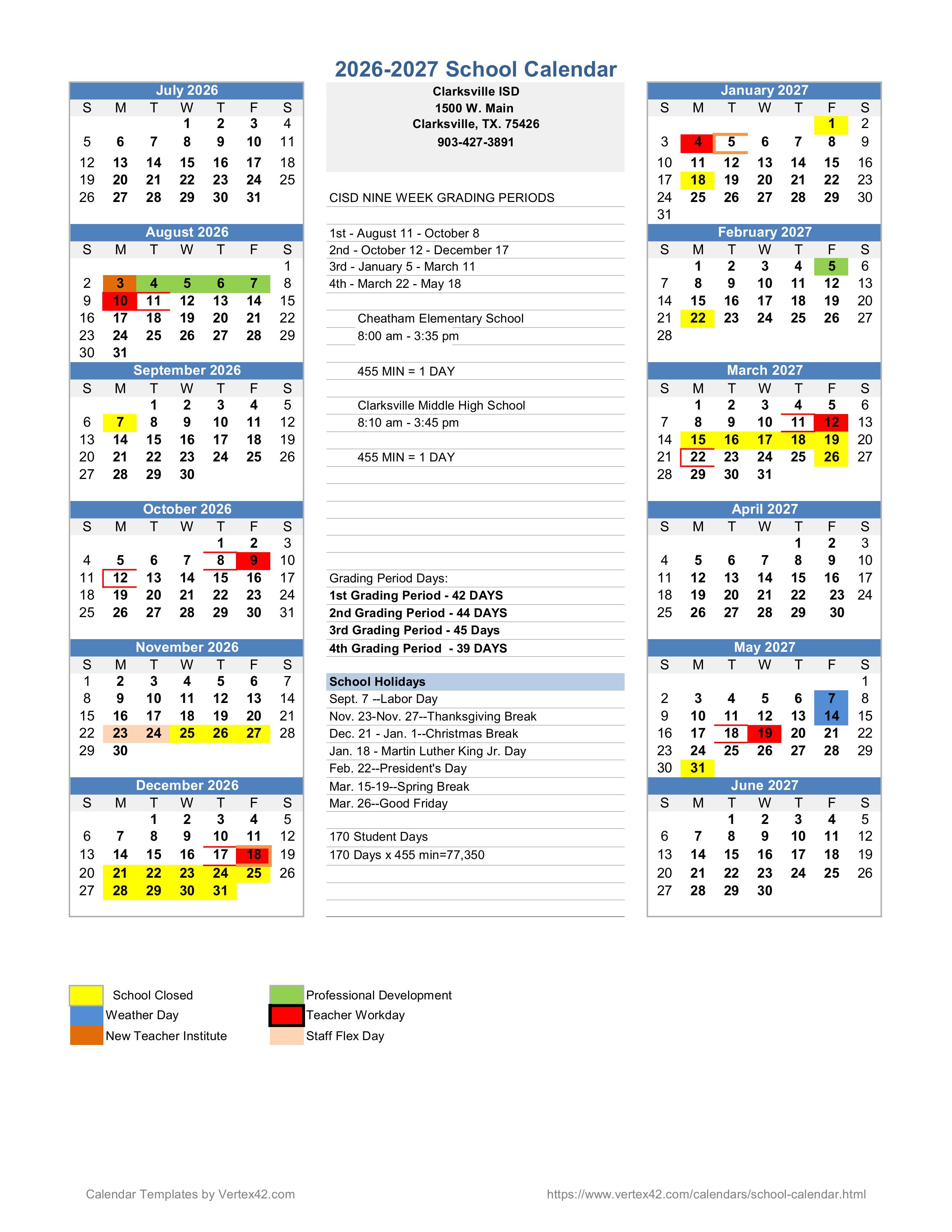 CISD Weekly Calendar: March 30 - April 4, 2026