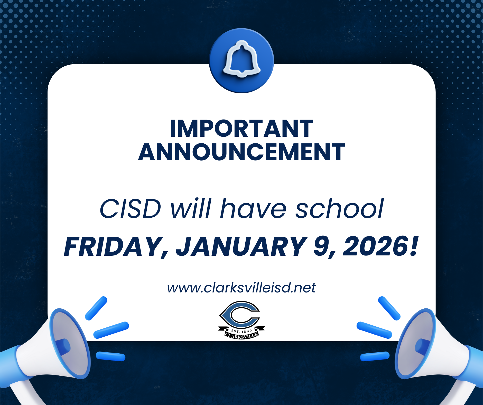 Drop a like, comment, and follow us on Facebook @ ClarksvilleISD.